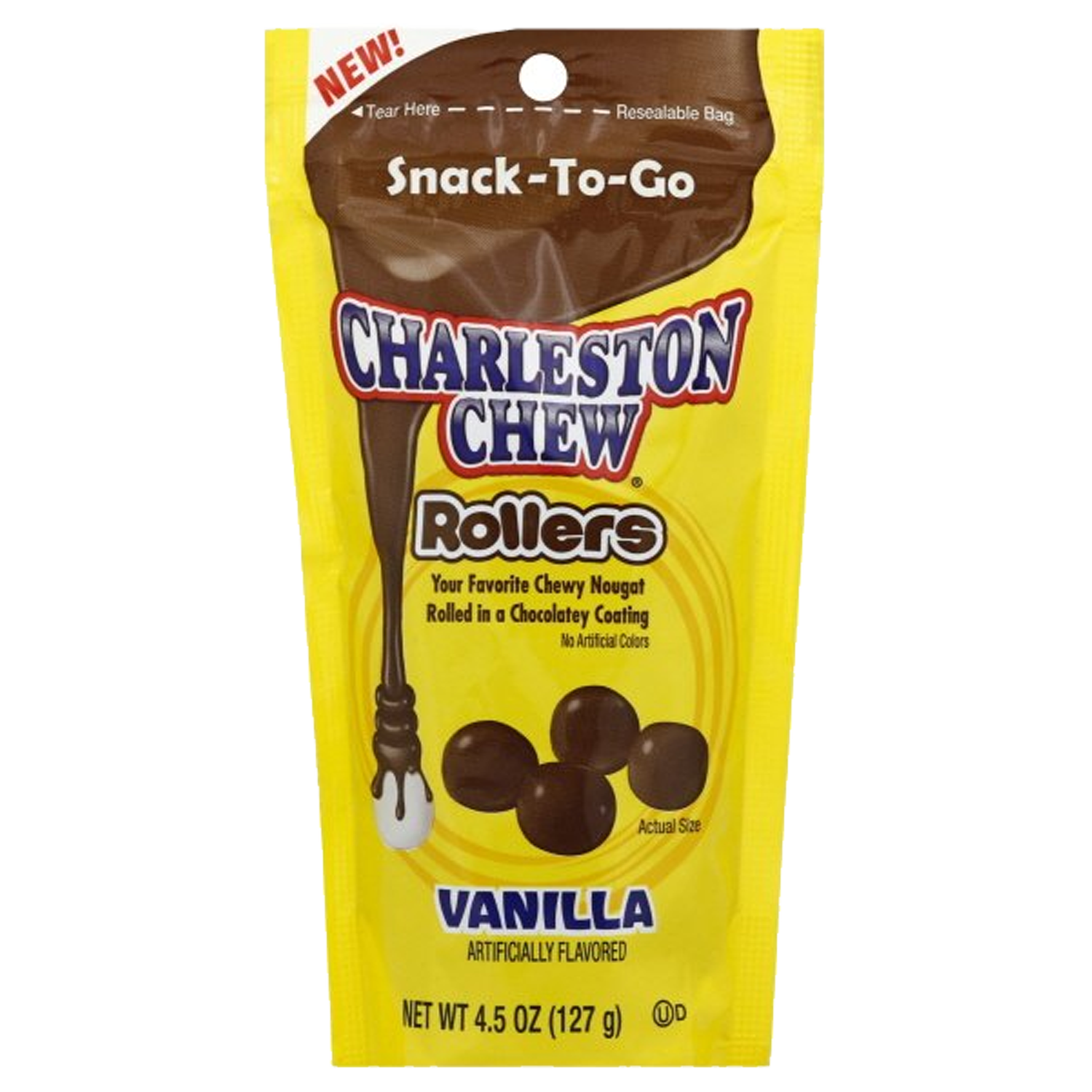 Charleston Chew Rollers - Bite-sized, chewy nougat rolled in a chocolatey coating. Our famous Charleston Chew Candy is packed in a resealable to-go pouch that travels well. So, indulge, snack, share and be happy - everywhere you go with Charleston Chew Rollers!