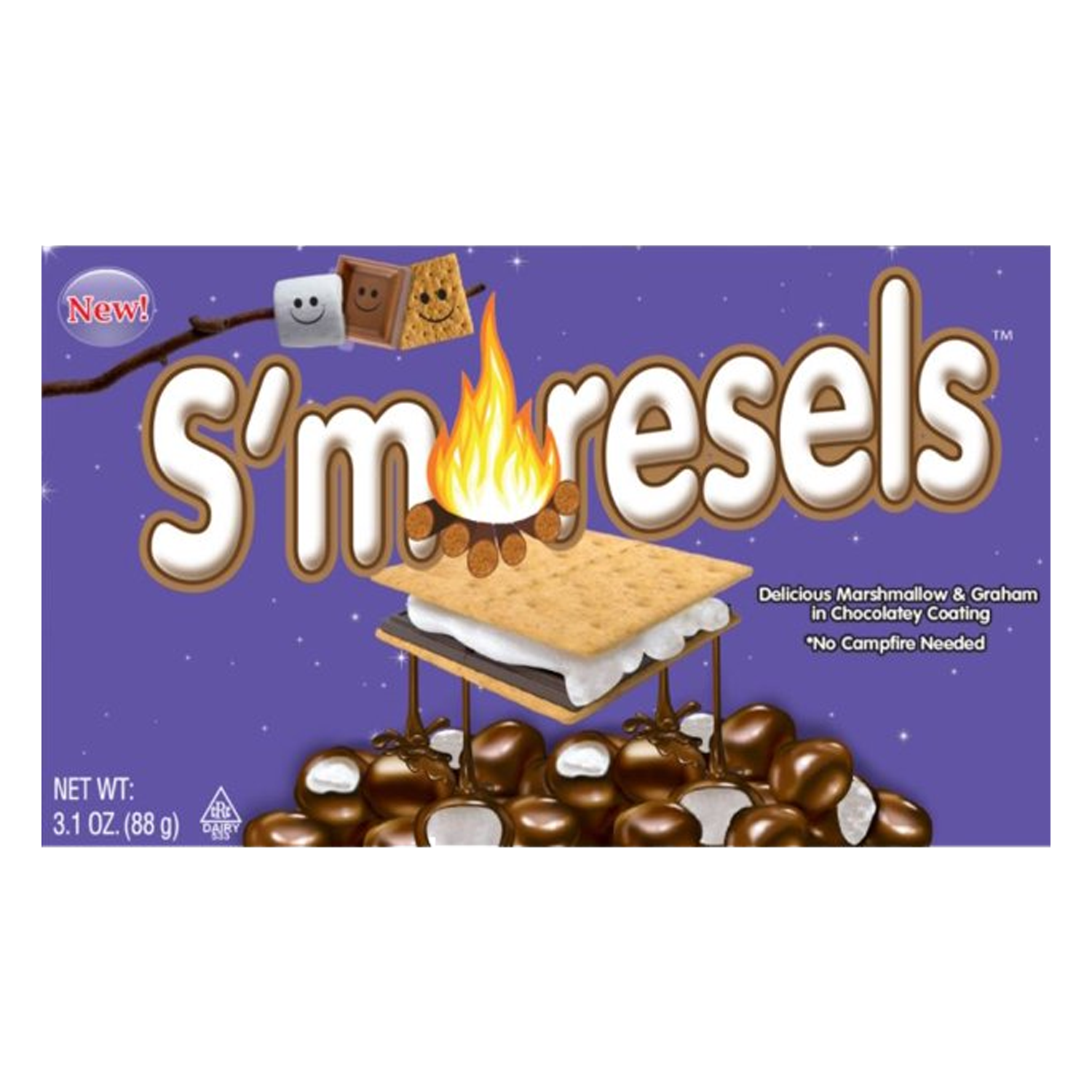 S'Moresels Case of twelve- 3.1oz boxes S'mores in a fun bite-size treat! No need for a campfire. Perfect for on-the-go. Delicious marshmallow & graham cracker with a yummy chocolatey coating
