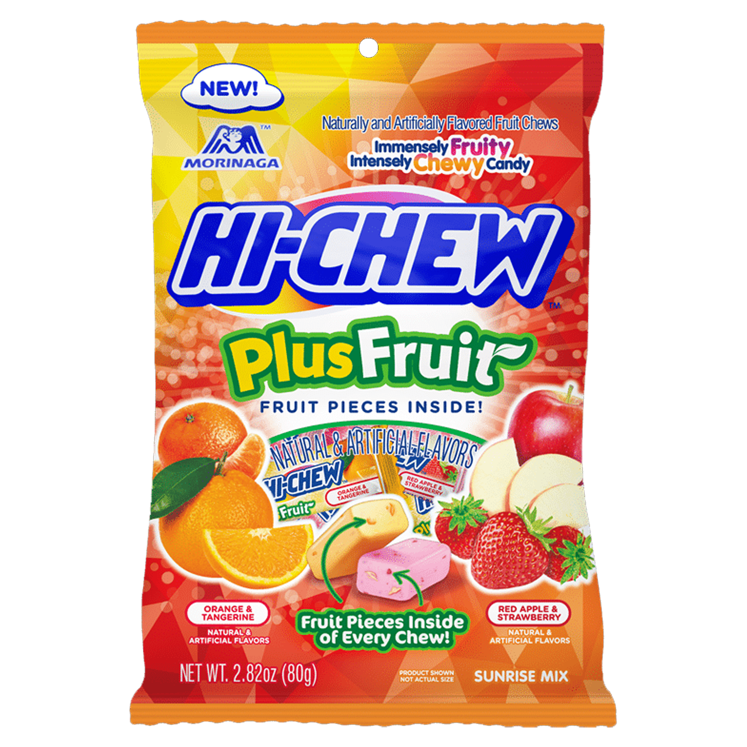 With real fruit pieces and HI-CHEW’s same juicy fruit flavors, Plus Fruit’s Sunrise Mix has the best of both worlds! Orange & Tangerine and Red Apple & Strawberry are two completely new flavor combinations that will send your taste buds soaring!