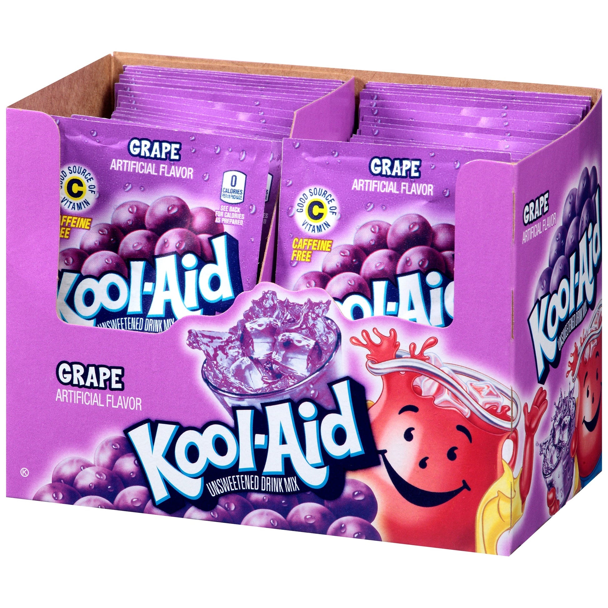 Kool-Aid Artificially Flavored Grape Unsweetened Powdered Drink Mix is a delicious way to stay hydrated. This unsweetened powdered drink mix makes it easy to prepare a tasty purple grape drink. Just mix it with water and sugar or your sweetener of choice. Quench your thirst with the refreshingly sweet taste of grape. With no caffeine, this artificially flavored grape powdered drink mix is always a great choice for the whole family. It's also a good source of vitamin C. These handy packets of unsweetened grape drink ensure that you always have a refreshing beverage ready-to-go.