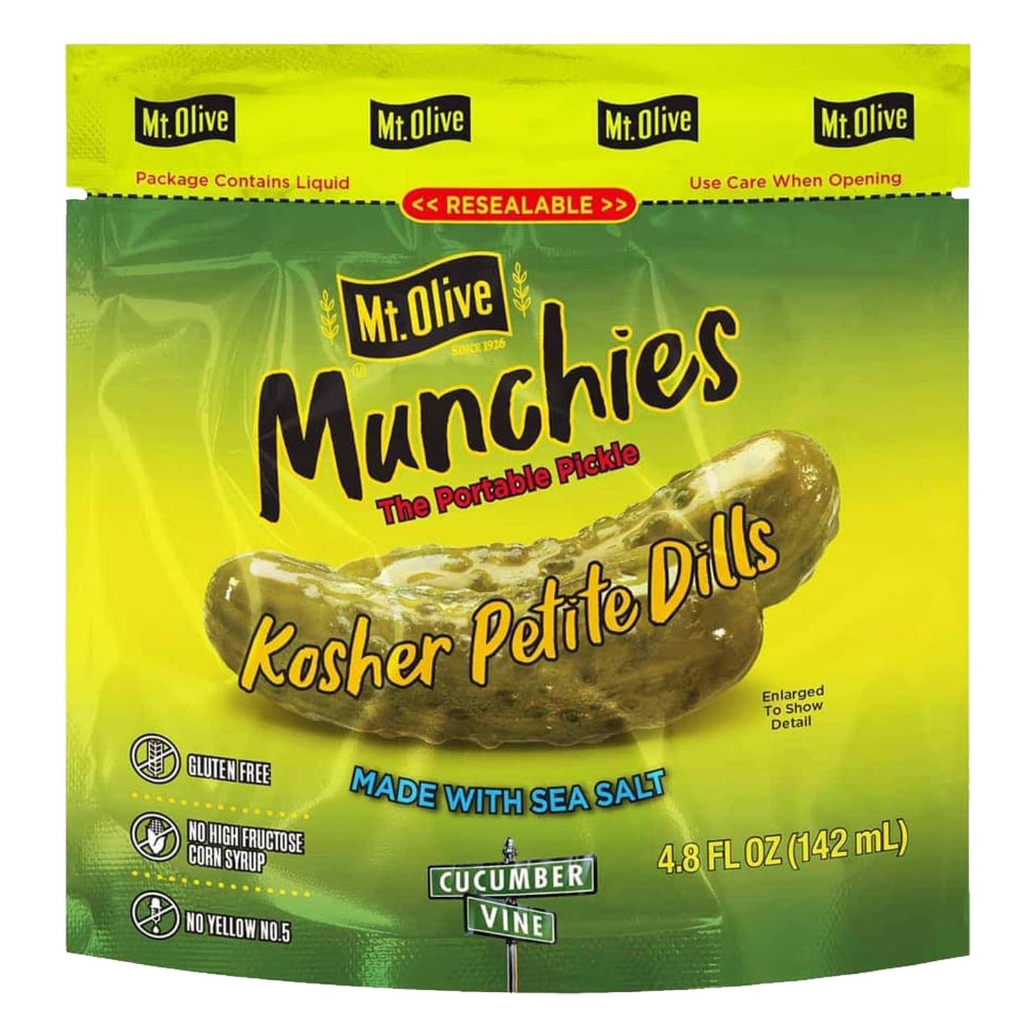 Enjoy our deliciously crunchy Munchies Kosher Petite Dills in a resealable pouch. Perfect for enjoying pickles on the go!