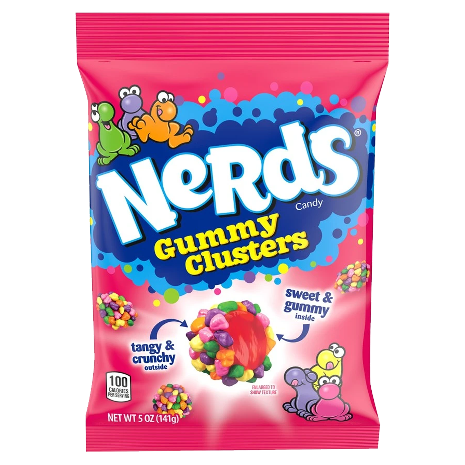 Nerds Gummy Clusters are a combination of flavors and texturestangy, crunchy, sweet, gummy and the poppable, bite-sized portionability. Rainbow Nerds surround fruity, gummy centers. Those sweet little sparks are fantastic inventors. A poppable cluster, packed with tangy, crunchy Nerds. A candy so tasty, there aren't even words. Taste the crunchy, gummy, yummy creation is the playful and fun-to-eat candy with a variety of delicious, crunchy, chewy and gummy options