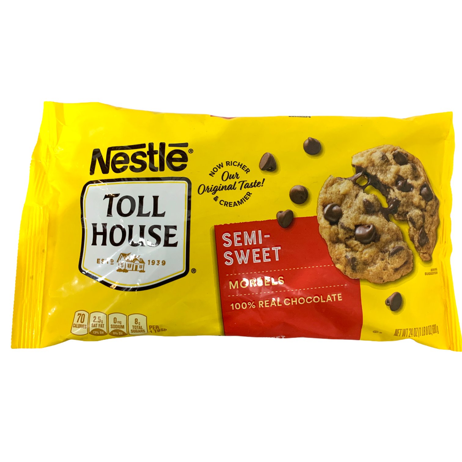Nestle Toll House Semi-Sweet Chocolate Chips make it easy to add rich and creamy chocolate morsels to your favourite baking recipes. Our original taste, now richer and creamier, these chocolate chips are easy to toss into Nestle Toll House cookies, dessert mixes and batters. Use this semi-sweet baking chocolate as a sweet addition to chocolate chip cookies, brownies and pancakes, or melt them to make chocolate candy.