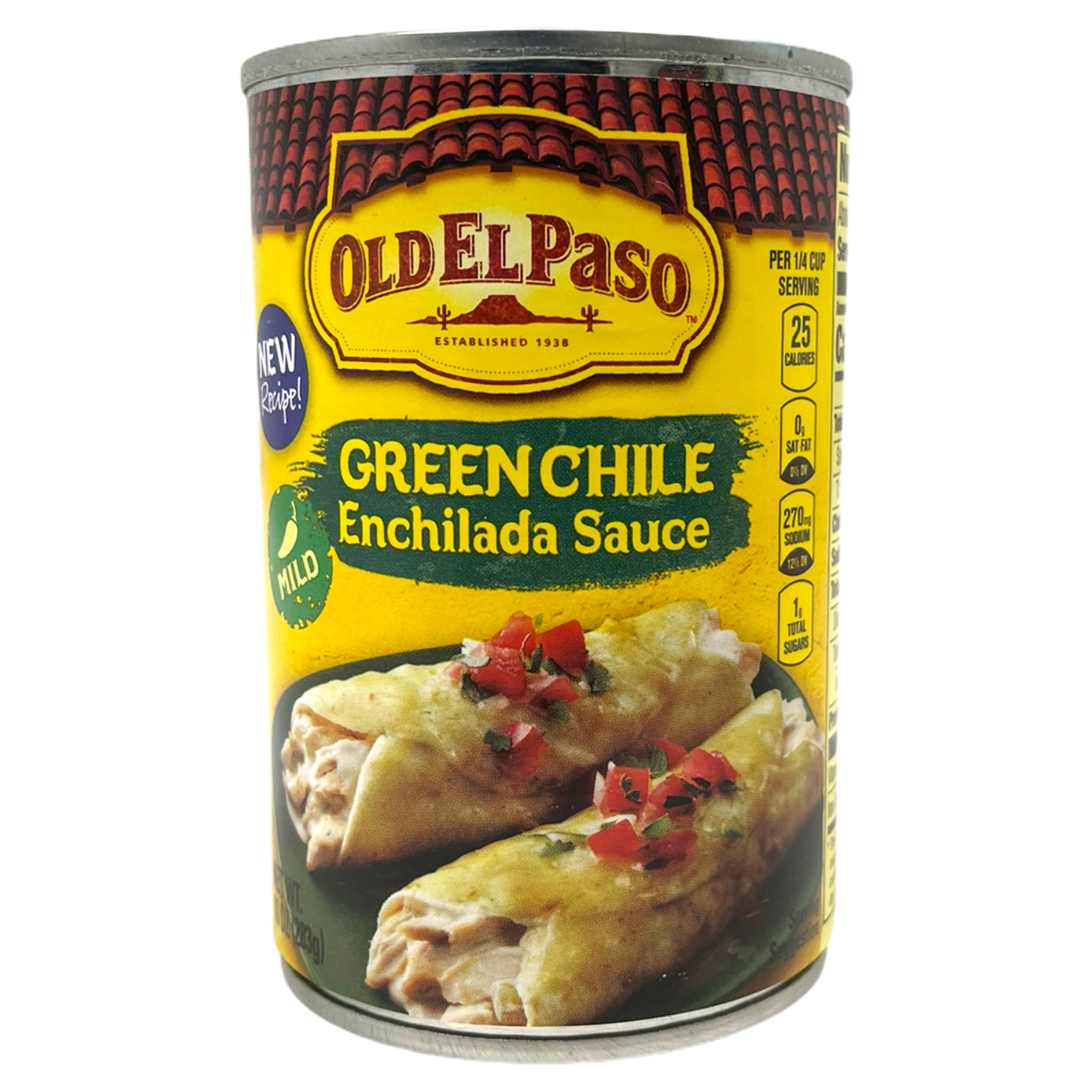 Put enchiladas on the menu tonight with Old El Paso Mild Green Chile Enchilada Sauce. The delicious blend of green chile peppers and Mexican-inspired spices makes it a perfect simmer sauce for all your casseroles, salads, soups and other Mexican food. One can of this family favorite makes five 6-inch enchiladas for an easy weeknight meal.
