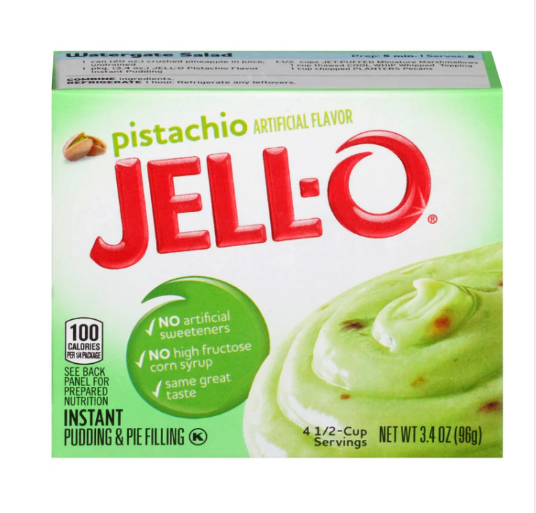 • Jell-O Pistachio Pudding Mix – Classic creamy pistachio flavour everyone loves