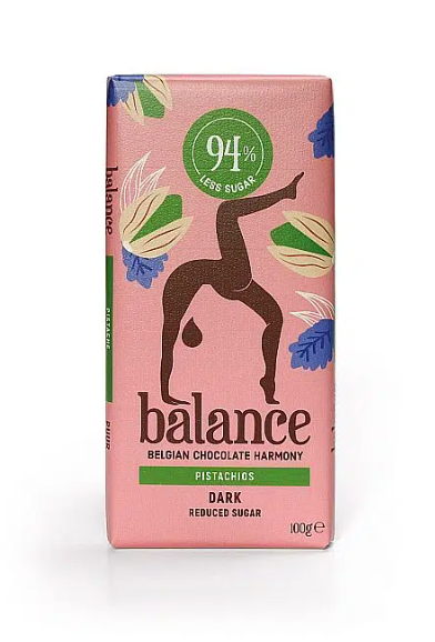 • Balance Belgian Chocolate – Dark Pistachio – Rich, reduced-sugar Belgian delight