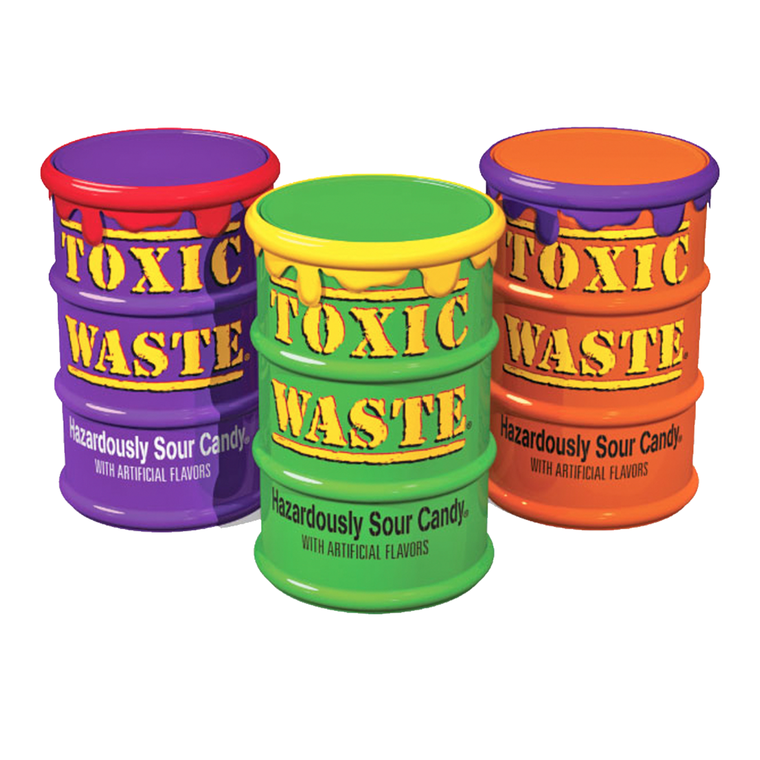Special edition Toxic Waste® drums are filled with the popular double action sour hard candy that packs a sour punch on the outside and the inner core. Assorted sour fruity flavours help motivate your customers to collect every colour drum. Flavours include apple, lemon, blue raspberry, black cherry, and watermelon—plus a new mystery flavour. Toxic Waste sour hard candies are gluten-free so even those refraining from gluten can enjoy the super sour wallop.