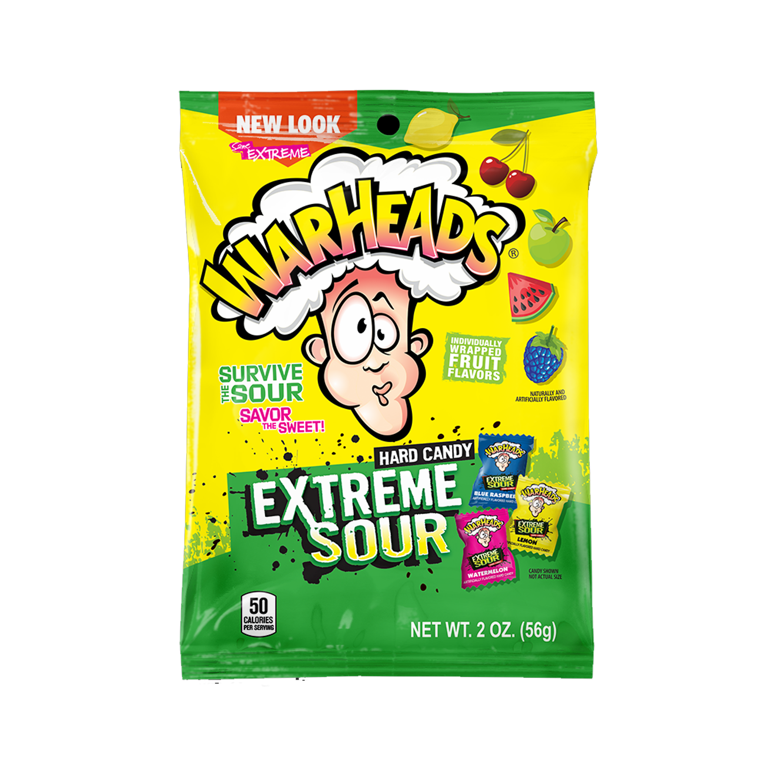 Survive the sour and savour the sweet taste of Warheads Extreme Sour Hard Candy. Warheads are the original sour candy. Their unique and intense sour coating will challenge taste buds. Warheads hard candy has a mouth-puckering flavour that melts away to reveal a candy-like sweetness underneath.