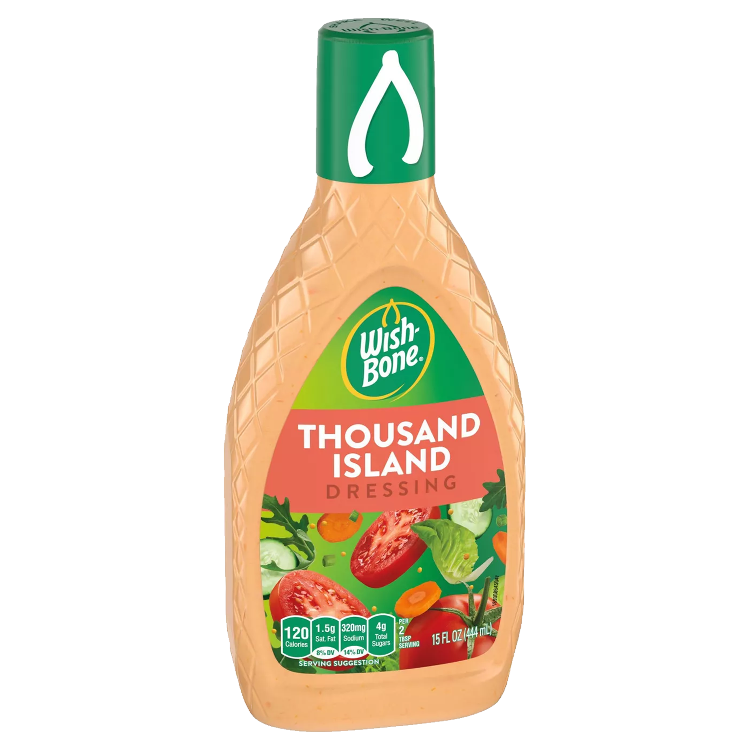 Indulge in the timeless taste of Wish-Bone Thousand Island Dressing – a smooth, tangy and creamy dressing that brings your salads, sandwiches, and dipping platters to life. Crafted with a delicious blend of tomato purée, pickle relish, and premium spices, this dressing adds a bold, flavourful twist to everyday meals.